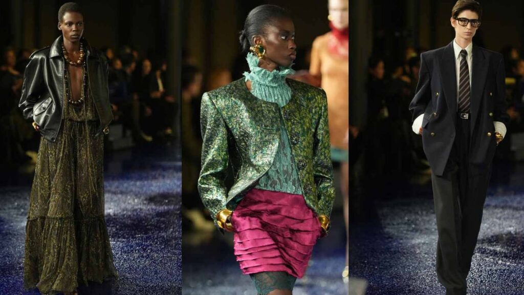 Vaccarello, znany z tego, że na każdym pokazie kreuje niezapomniane sylwetki, tym razem oddał hołd naturze współczesnej kobiety. Od kultowych garniturów inspirowanych męskim stylem, po zwiewne, luźne tuniki, aż po bogate, błyszczące tkaniny wieczorowych stylizacji. Ta zaprezentowana na pokazie w Paryżu kolekcja jest odpowiedzią na potrzeby kobiet, które pragną łączyć codzienny komfort z wyrafinowaną elegancją.